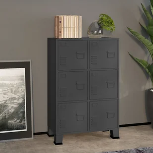 Szafkę biurową wykonano z metalu, dzięki czemu jest solidna i stabilna. Zawiera ona 6 drzwiczek, zapewniając mnóstwo miejsca do uporządkowania i przechowywania Twoich dokumentów w zasięgu ręki. Każde drzwi zawierają uchwyt na identyfikator oraz otwory wentylacyjne, co pozwala skrzętnie posortować dokumenty na różne kategorie oraz podkreśla industrialny styl mebla. Ponadto szafkę można łatwo wyczyścić wilgotną ściereczką.