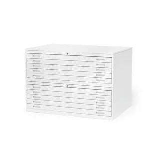 Stylowa szafka na rysunki, składająca się z blatu oraz dwóch sekcji, oferujących po pięć zamykanych szuflad na rysunki w formacie A0. Szuflady zamykają się miękko i lekko, a obie sekcje są wyposażone w centralny zamek. Solidna, dobrze wykonana szafka na rysunki zapewnia bezpieczne i wydajne przechowywanie rysunków w rozmiarze A0 lub mniejszym. Szuflady ochronią rysunki, ułatwiając utrzymanie porządku w biurze i znalezienie odpowiedniego rysunku, gdy go potrzebujesz. Dzięki eleganckiemu, stylowemu wzornictwu szafka wpasuje się w każde środowisko biurowe. Doskonale nadaje się do ustawienia w środku pomieszczenia lub przy ścianie.