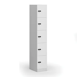 Szafki biurowe Szafka ubraniowa ze schowkami, 5 schowków, 1850 x 300 x 500 mm, zamek mechaniczny z kodem, drzwi laminowane, biała