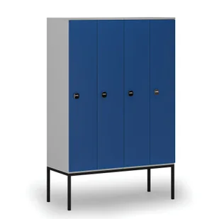 Drewniana szafa ubraniowa S4 z podstawą, 4-drzwiowa, 1871 x 1200 x 500 mm, demontaż, zamek RFID, szary/niebieski