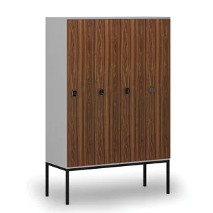 Szafy biurowe Drewniana szafa ubraniowa z podstawą, 4 przegródki, zamek kodowy, szary/orzech