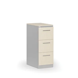 Kartoteka metalowa PRIMO z drewnianym frontem A4, 3 szuflady, szary/brzoza