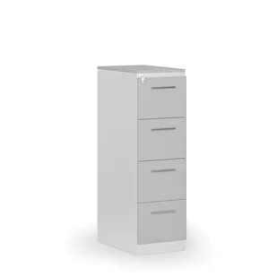 Kartoteka metalowa PRIMO z drewnianym frontem A4, 4 szuflady, biały/szary