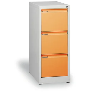 Metalowa szafa kartotekowa A4, 3 pomarańczowe szuflady, szary korpus