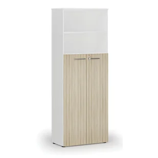 Szafy biurowe Szafa biurowa kombinowana PRIMA WHITE, drzwi na 4 poziomach, 2128 x 800 x 420 mm, biały/dąb naturalny