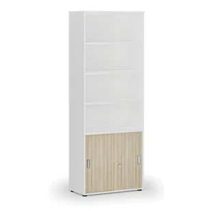 Szafy biurowe Szafa biurowa kombinowana PRIMA WHITE, drzwi przesuwne na 2 poziomach, 2128 x 800 x 420 mm, biały/dąb naturalny