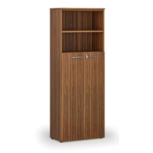 Szafa biurowa kombinowana PRIMA WOOD, drzwi na 4 poziomach, 2128 x 800 x 420 mm, orzech