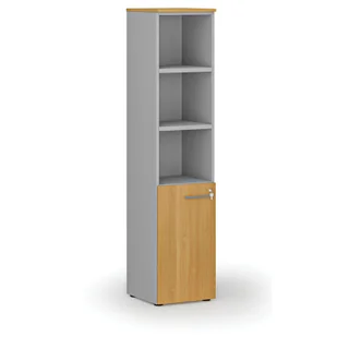 Szafa biurowa kombinowana PRIMO GRAY, drzwi na 2 poziomach, 1781 x 400 x 420 mm, szary/buk