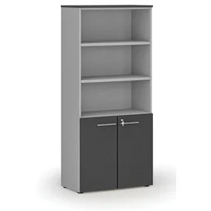 Szafy biurowe Szafa biurowa kombinowana PRIMO GRAY, drzwi na 2 poziomach, 1781 x 800 x 420 mm, szary/grafit