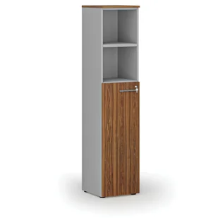 Szafa biurowa kombinowana PRIMO GRAY, drzwi na 3 poziomach, 1781 x 400 x 420 mm, szary/orzech