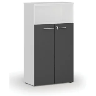 Szafa biurowa kombinowana PRIMO WHITE, drzwi na 3 poziomach, 800 x 420 x 1434 mm, biały/grafit
