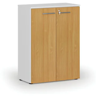 Szafy biurowe Szafa biurowa z drzwiami PRIMO WHITE, 1087 x 800 x 420 mm, biały/buk