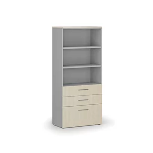 Szafy biurowe Szafa biurowa z kombinowanymi szufladami PRIMO GRAY, 1781 x 800 x 420 mm, szary/brzoza