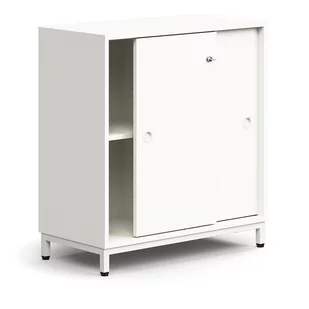 Zamykana szafa przesuwna QBUS, 1 półka, nóżki, uchwyty, 868x800x400 mm, biały