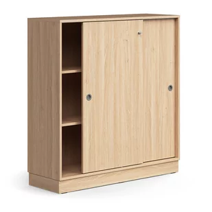 Zamykana szafa przesuwna QBUS, 2 półki, cokół, uchwyty, 1252x1200x400 mm, dąb