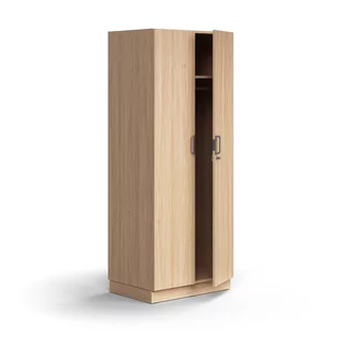 Zamykana szafa ubraniowa QBUS, z drążkiem na odzież, cokół, 2020x800x570 mm, dąb