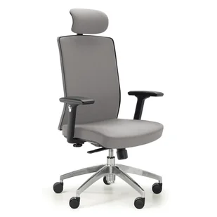 wysokiej jakości krzesło biurowe podstawę tworzy pięcioramienny krzyż z polerowanego aluminium twarde kółka na miękkie podłogi podnośnik gazowy zapewnia regulację wysokości mechanizm synchroniczny zapewnia komfortowe ustawienie nachylenia siedziska i oparcia oraz regulację przeciwwagi siedzącego podpórka biodrowa z możliwością regulacji w poziomie regulacja podłokietników: pionowa, do przodu lub do tyłu i obrót na boki oparcie zakończone regulowanym zagłówkiem siedzisko obite elastycznym materiałem o odporności 100 000 cykli oparcie z trwałej ale elastycznej siatki lub obite tym samym materiałem co siedzisko nośność 150 kg