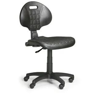 siedzenie i oparcie wykonane z nietoksycznego, miękkiego poliuretanu (PUR), łatwa konserwacja za pomocą zwykłych środków dezynfekujących i czyszczących możliwość przymocowania podłokietników płynna regulacja wysokości podnośnikiem gazowym czarna plastikowa podstawa nośność 110 kg