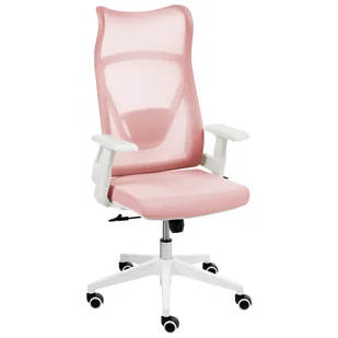 Krzesło biurowe. Kolor główny: Różowy. Odcień: Pastelowy róż. Rodzaj materiału: Tkanina. Materiał: Siatka. Materiał dodatkowy: