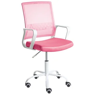 Szczegóły: Typ produktu: Krzesło biurowe. Styl: Klasyczny. Kolor główny: Różowy. Rodzaj materiału: Tkanina. Materiał: Siatka. Materiał dodatkowy:
