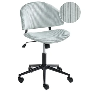 Krzesło do biura bez podłokietników. Ulepsz swoje miejsce pracy dzięki temu stylowemu i wygodnemu krzesłu biurowemu. Tapicerowane miękkim sztruksem o charakterystycznej fakturze, nadaje pomieszczeniu przytulny charakter inspirowany stylem retro, a jednocześnie zapewnia komfort użytkowania przez cały dzień. Płynna regulacja wysokości pozwala łatwo znaleźć idealną pozycję do pracy, a stabilna podstawa z kółkami umożliwia łatwe przemieszczanie się, dzięki czemu ten fotel nadaje się idealnie zarówno do domowego, jak i profesjonalnego biura. Szczegóły: Typ produktu: