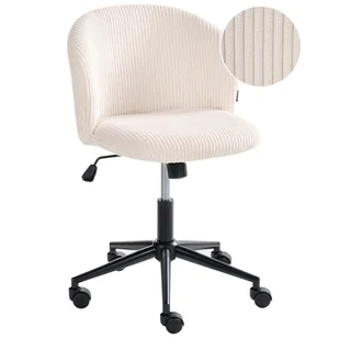 Krzesło do biura bez podłokietników. Zadbaj o wygodę podczas pracy z tym stylowym krzesłem biurowym. Tapicerowane miękkim sztruksem, oferuje elegancki wygląd i komfortowe siedzisko, które sprzyja skupieniu. Oparcie wspiera prawidłową postawę, a regulacja wysokości pozwala łatwo dopasować krzesło do biurka. Solidna metalowa podstawa, możliwość obrotu o 360° oraz kółka zapewniają swobodę ruchu, dzięki czemu to krzesło świetnie sprawdzi się w domowym biurze lub kreatywnym studio.