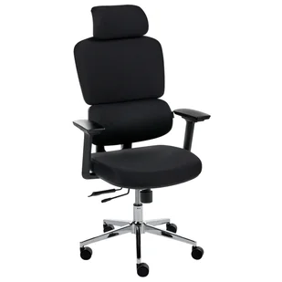 Tapicerowany fotel biurowy z odchylanym oparciem. Odnajdź idealne połączenie komfortu i wsparcia dla ciała dzięki temu ergonomicznemu fotelowi biurowemu. Zarówno jego zagłówek, jak i podłokietniki są regulowane, umożliwiając prawidłowe ułożenie ciała i dostosowanie do własnych preferencji. Dodatkowo krzesło ma przesuwane siedzisko, które pozwala na precyzyjną regulację w celu lepszego podparcia dolnej części pleców, oraz odchylane oparcie, które sprzyja zdrowej postawie. Tapicerka z miękkiej tkaniny i wypełnienie z pianki wtryskowej gwarantują wygodę, a pneumatyczna regulacja wysokości z obrotową podstawą zwiększają mobilność.