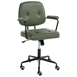 Krzesło biurowe na kółkach w stylu retro. Odśwież swoje biuro dzięki temu funkcjonalnemu krzesłu obrotowemu. Wyposażone jest w mechanizm obracania o 360°, opcję odchylenia oraz mechanizm regulacji wysokości, który pozwala dostosować ją do własnych preferencji. Krzesło obite trwałą tkaniną ma pikowane oparcie, wyściełane podłokietniki i siedzisko z guzikami, co zapewnia proste, ale eleganckie wykończenie. Malowane proszkowo metalowe nogi sprawiają, że mebel jest stabilny i wytrzymały.