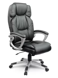 Fotel z wysokim oparciem, wykonany ze skóry ekologicznej.