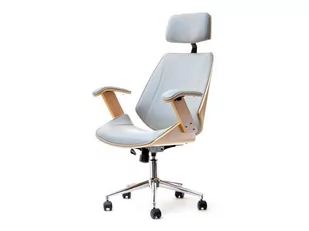 cechy funkcja bujania, obrotowe siedzisko, podłokietniki - tak, podstawa centralna z kółkami, regulowana wysokość, zagłówek - tak Kolorystyka kolor podstawy: chrom kolor siedziska: bukowy, szary przeznaczenie biuro, lokal usługowy, pracownia w domu styl wnętrzarski skandynawski, współczesny Wymiary i waga długość: 65 cm szerokość: 65 cm wysokość: