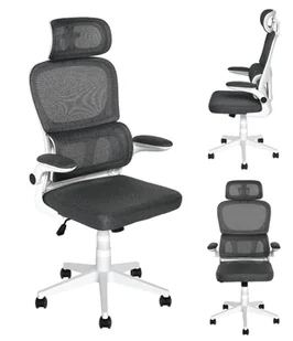 Fotel biurowy, krzesło biurowe Fotel krzesło obrotowy biurowy siatka podstawa biała szary