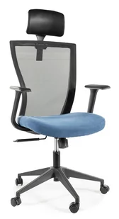 W fotelu do biurka zastosowano podłokietniki stałe pozwalające na wygodne oparcie rąk w czasie pracy, a tym samym odciążenie mięśni ramion oraz barków. Mechanizm MULTIBLOCK zamontowany w fotelu pozwala na swobodne kołysanie się, obracanie, blokadę oparcia w dowolnej pozycji oraz płynną regulację wysokości siedziska. Pięcioramienna podstawa fotela biurowego Q-328H z czarnego tworzywa zaopatrzona jest w komplet kółek z powłoką kauczukową, które przeznaczone są do paneli oraz płytek, gdyż nie rysują ich. Cechy produktuwygodny fotel biurowy do komputera,oparcie fotela pokryte czarną siatką,siedzisko tapicerowane niebieską tkaniną materiałową,regulowany zagłówek,podłokietniki stałe z tworzywa,mechanizm MULTIBLOCK,płynna regulacja wysokości fotela,blokada oparcia w wybranej pozycji,swobodne kołysanie się,podstawa wykonana z czarnego tworzywa sztucznego,kółka do paneli i płytek z powłoką kauczukową w zestawie,do samodzielnego montażu