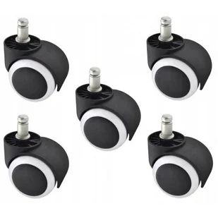 Twoja podłoga w końcu będzie bezpieczna, a Ty z ulgą usiądziesz na fotelu. Dodatkową zaletą kółek jest fakt, że są ciche i nie ślizgają się po powierzchni. W zestawie znajduje się 5 czarno-białych kółek, które będą pasować zarówno do jasnych jak i ciemnych odcieni tapicerki. Dane techniczne: Materiał: kauczuk PU Średnica kółek: