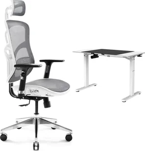 Krzesło biurowe Diablo Chairs V-Basic Biało-szare + EGON 1100 Białe 110 cmx60 cm
