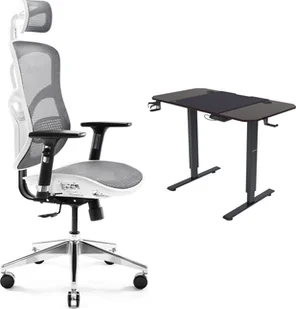 Fotel biurowy, krzesło biurowe Krzesło biurowe Diablo Chairs V-Basic Biało-szare + EGON 1100 Orzechowe 110 cmx60 cm
