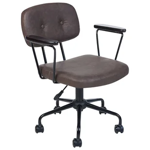 To inspirowane stylem retro krzesło z nowoczesnymi akcentami może być miłym dodatkiem do każdego domowego biura. Tapicerka ze sztucznej skóry o błyszczącym wykończeniu dodaje produktowi elegancji, czyniąc go nie tylko funkcjonalnym, ale i stylowym. Podłokietniki przypominające swoim wyglądem naturalne drewno idealnie komponują się z czarną metalową konstrukcją. Wbudowana funkcja regulacji siedziska pozwoli ci idealnie dopasować mebel do Twoich potrzeb.