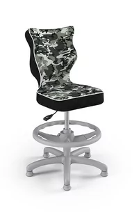 100% poliester Ścieralność: 25 000 cykli Dane techniczne Wzrost użytkownika (cm) 119-142 Wysokość blatu biurka (cm) 70-83 Wysokość oparcia (mm) 325 Szerokość oparcia (mm) 330 Minimalna wysokość siedziska (mm) 440 Maksymalna wysokość siedziska (mm) 570 Głębokość siedziska (mm) 300 Szerokość siedziska (mm) 330 Szerokość podstawy (mm) 550 Regulowane podłokietniki Brak Podnóżek Tak Maksymalne obiążenie 80 Waga produktu (kg) 7 Mechanizm Podstawowy Kolor komponentów szary Skład komponentów Tworzywo sztuczne Materiał siedziska 100% poliester Wzór moro, biała lamówka Kolor siedziska czarny Jak dobrać odpowiedni rozmiar krzesła do wzrostu użytkownika? Kręgosłup jako główny stabilizator ciała wymaga wsparcia w okresie dojrzewania, kiedy rośniemy i się rozwijamy. Mając 130 cm wzrostu poszczególne odcinki kręgosłupa znajdują się na innej wysokości niż w momencie kiedy osiągniemy 170 cm wzrostu. Z punktu ergonomii jest to niezwykle ważne, aby krzesło było odpowiednio dopasowane do wzrostu dziecka c. . .