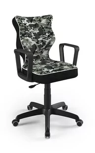 Krzesło młodzieżowe Norm tkanina Storia motyw moro Model Norm dopasowany do biurek o wysokości 70-82 cm. Krzesło obrotowe dla młodzieży jest ważnym elementem wyposażenia pokoju każdego nastolatka. Przygotowaliśmy dla naszych Klientów model Norm, którego siedzisko zostało wyprofilowane w ergonomiczny sposób, dzięki czemu użytkownik zyskuje maksimum wygody. Jesteśmy pewni, że nasz produkt spełni Twoje oczekiwania. Co wyróżnia krzesło obrotowe młodzieżowe Norm? • Ergonomiczne siedzisko wykonane z tworzywa sztucznego, • Stałe podłokietniki, również wykonane z tworzywa sztucznego, w czarnym kolorze • Blacha siedziska posiada stalową dźwignię prostą, dzięki czemu krzesło można sprawnie regulować, • Kolumna w postaci podnośnika gazowego ze stali oraz tworzywa sztucznego, • Teleskopowa osłonka na podnośnik gazowy, • Miękkie, czarne kółka Zdrowe plecy, maksimum komfortu Wklęsło - wypukła forma oparcia zapewnia prawidłowe ułożenie kręgosłupa, dając użytkownikowi maksymalne odciążenie kręgosłupa.