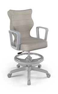 Krzesło młodzieżowe Norm z podnóżkiem tkanina Monolith kolor szary Model Norm dopasowany do biurek o wysokości 70-82 cm. Krzesło obrotowe dla młodzieży jest ważnym elementem wyposażenia pokoju każdego nastolatka. Przygotowaliśmy dla naszych Klientów model Norm, którego siedzisko zostało wyprofilowane w ergonomiczny sposób, dzięki czemu użytkownik zyskuje maksimum wygody. Jesteśmy pewni, że nasz produkt spełni Twoje oczekiwania. Co wyróżnia krzesło obrotowe młodzieżowe Norm? • Ergonomiczne siedzisko wykonane z tworzywa sztucznego, • Stałe podłokietniki, również wykonane z tworzywa sztucznego, w szarym kolorze • Blacha siedziska posiada stalową dźwignię prostą, dzięki czemu krzesło można sprawnie regulować, • Kolumna w postaci podnośnika gazowego ze stali oraz tworzywa sztucznego, • Podnóżek z regulowaną wysokością • Miękkie, szare kółka Zdrowe plecy, maksimum komfortu Wklęsło - wypukła forma oparcia zapewnia prawidłowe ułożenie kręgosłupa, dając użytkownikowi maksymalne odciążenie kręgosłupa.