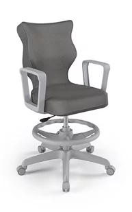 Krzesło młodzieżowe Norm z podnóżkiem tkanina Monolith kolor ciemny szary Model Norm dopasowany do biurek o wysokości 70-82 cm. Krzesło obrotowe dla młodzieży jest ważnym elementem wyposażenia pokoju każdego nastolatka. Przygotowaliśmy dla naszych Klientów model Norm, którego siedzisko zostało wyprofilowane w ergonomiczny sposób, dzięki czemu użytkownik zyskuje maksimum wygody. Jesteśmy pewni, że nasz produkt spełni Twoje oczekiwania. Co wyróżnia krzesło obrotowe młodzieżowe Norm? • Ergonomiczne siedzisko wykonane z tworzywa sztucznego, • Stałe podłokietniki, również wykonane z tworzywa sztucznego, w szarym kolorze • Blacha siedziska posiada stalową dźwignię prostą, dzięki czemu krzesło można sprawnie regulować, • Kolumna w postaci podnośnika gazowego ze stali oraz tworzywa sztucznego, • Podnóżek z regulowaną wysokością • Miękkie, szare kółka Zdrowe plecy, maksimum komfortu Wklęsło - wypukła forma oparcia zapewnia prawidłowe ułożenie kręgosłupa, dając użytkownikowi maksymalne odciążenie kręgosłupa.