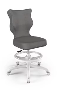 Krzesło dziecięce Petit z podnóżkiem tkanina Monolith kolor ciemny szary Model Petit z podnóżkiem dopasowany do biurek o wysokości 70-82 cm. Nowoczesne krzesło z podnóżkiem Petit z białą podstawą jest innowacyjną propozycją. Cała seria charakteryzuje się głównym motywem przewodnim jakim jest ergonomiczny kształt i propagowanie zdrowej postawy podczas siedzenia. W jaki sposób to niezwykłe krzesło wpisuje się w tę koncepcję? Oparcie jest ściśle dopasowane do ukształtowania kręgosłupa. Sprawia to, że plecy mniej się męczą.