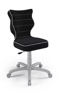 Krzesło dziecięce Petit tkanina Jasmine kolor czarny Model Petit dopasowany do biurek o wysokości 70-82 cm. Krzesło tapicerowane szare z kolekcji Petit zostało stworzone z myślą o dzieciach. Doskonale wyprofilowany kształt siedziska sprawia, że młode osoby odrabiając zadania, ucząc się czy przeglądając treści w sieci nie garbią się. Nasz produkt pozwala na uniknięcie wad postawy, a także zapewnia maksymalny komfort i wygodę. szare krzesło do biurka dla dzieci bez dwóch zdań przypadnie do gustu każdemu! Co charakteryzuje krzesło szare młodzieżowe z serii Petit? • Komfortowe, ergonomiczne siedzisko, wykonane ze sztucznego tworzywa, • Blacha siedziska ze stalową dźwignią prostą, • Gazowy podnośnik, ze stali i tworzywa sztucznego, • Teleskopowa osłonka na podnośnik gazowy wykonana z tworzywa sztucznego, • Miękkie kółka z tworzywa sztucznego Zdrowe plecy, maksimum komfortu Wklęsło - wypukła forma oparcia zapewnia prawidłowe ułożenie kręgosłupa, dając użytkownikowi maksymalne odciążenie kręgosłupa.