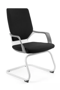 Biurowy fotel APOLLO SKID z podłokietnikami Fotel APOLLO SKID posiada solidną podstawę typu płoza wykonaną z lakierowanego na biało metalu. Tego typu podstawa pozwala na delikatne bujanie się, co może być ciekawą formą relaksu podczas przerwy. Korpus fotela na płozie z białego tworzywa połączony jest z podłokietnikami, dzięki czemu tworzy spójną całość. Fotel z podłokietnikami zapewni miejsce na wygodne ułożenie rąk. Oparcie i siedzisko fotela APOLLO SKID tapicerowane jest czarną tkaniną materiałową, która cechuje się dużą odpornością na ścieranie, dzięki czemu doskonale sprawdzi się w warunkach intensywnego użytkowania.