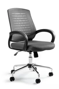 siatki na oparciu, która pozwala na swobodny przepływ powietrza, oraz miękkiej tkaniny membranowej na siedzisku, która jest materiałem mocnym i wytrzymałym. Podstawa fotela wykonana została z chromowanego metalu i wyposażona w komplet kółek z tworzywa, przeznaczonych do powierzchni miękkich. Cechy produktuoparcie pokryte wysokiej jakości siatką przepuszczającą powietrze,Siedzisko obszyte tkaniną membranową,Konstrukcja z chromowanego metalu,Mechanizm TILT, możliwość bujania się lub blokada w jednej pozycji,Podnośnik gazowy z certyfikatem BIFMA,Maksymalne obciążenie 130 kg,Waga 11 kg. Wydajność Oparcie: wysokiej jakości tkanina siatkowa przepuszczająca powietrze Siedzisko: