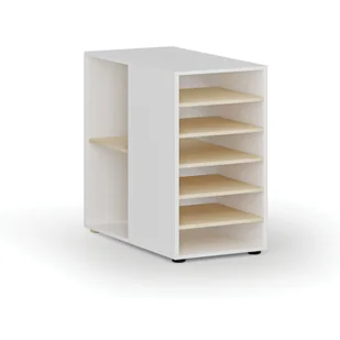 Dostawna szafka półkowa do biurka PRIMO WHITE, lewa, biała/brzoza