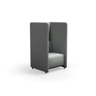 Dzięki wysokim bokom fotel oferuje efekt dźwiękochłonny i ekranujący, idealny na przykład na małe prywatne spotkania lub do prowadzenia rozmów telefonicznych. Wysokie boki zapewniają prywatność i tłumią dźwięk zarówno z zewnątrz, jak i od wewnątrz.