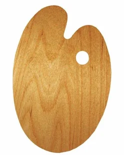 Paleta drewniana, owalna, wykonana ze sklejki. Nie jest impregnowana woskiem. Przeznaczona do farb olejnych, akrylowych, oraz tempery. Posiada otwór na kciuk, który ułatwia trzymanie palety w dłoni.
