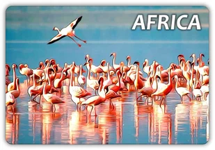 Magnes na lodówkę - Souvenir - Pamiątka Ilustracja: AFRYKA - Flamingi - Animals Wymiar: 95 mm x 65 mm Grubość: 1,6 mm Narożniki: zaokrąglone Rodzaj magnesu: ...