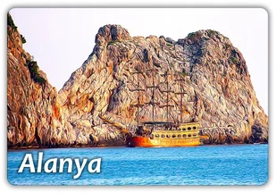 Magnes na lodówkę - Souvenir - Pamiątka Ilustracja: ALANYA - Morze Śródziemne - Turcja Wymiar: 95 mm x 65 mm Grubość: 1,6 mm Narożniki: zaokrąglone Rodzaj ma...