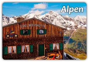 Magnes na lodówkę - Souvenir - Pamiątka Ilustracja: ALPY - Edelweisshutte Wymiar: 95 mm x 65 mm Grubość: 1,6 mm Narożniki: zaokrąglone Rodzaj magnesu: twardy...
